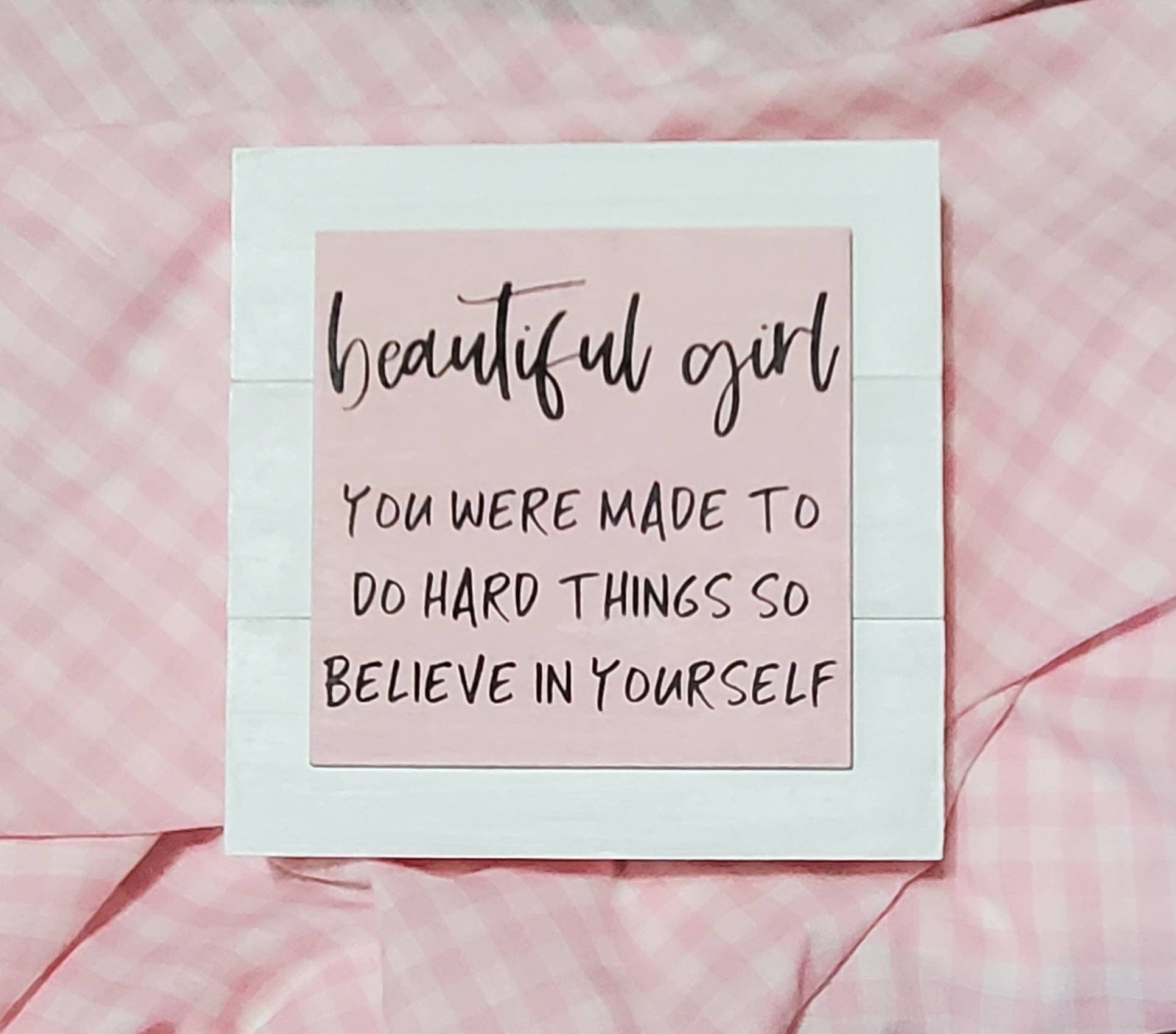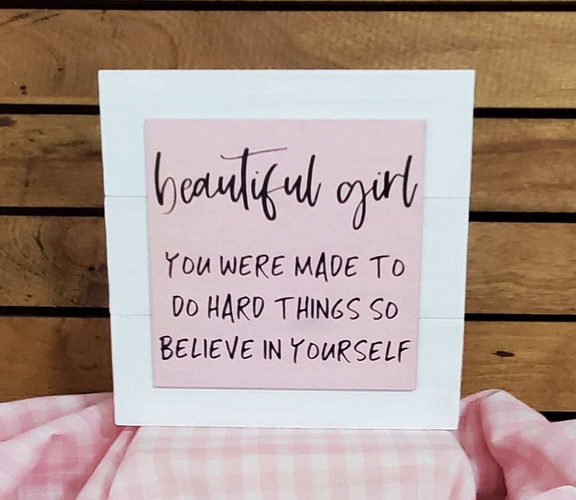 “Beautiful Girl” Motivational Wood Sign – Hand-Painted Shelf Sitter