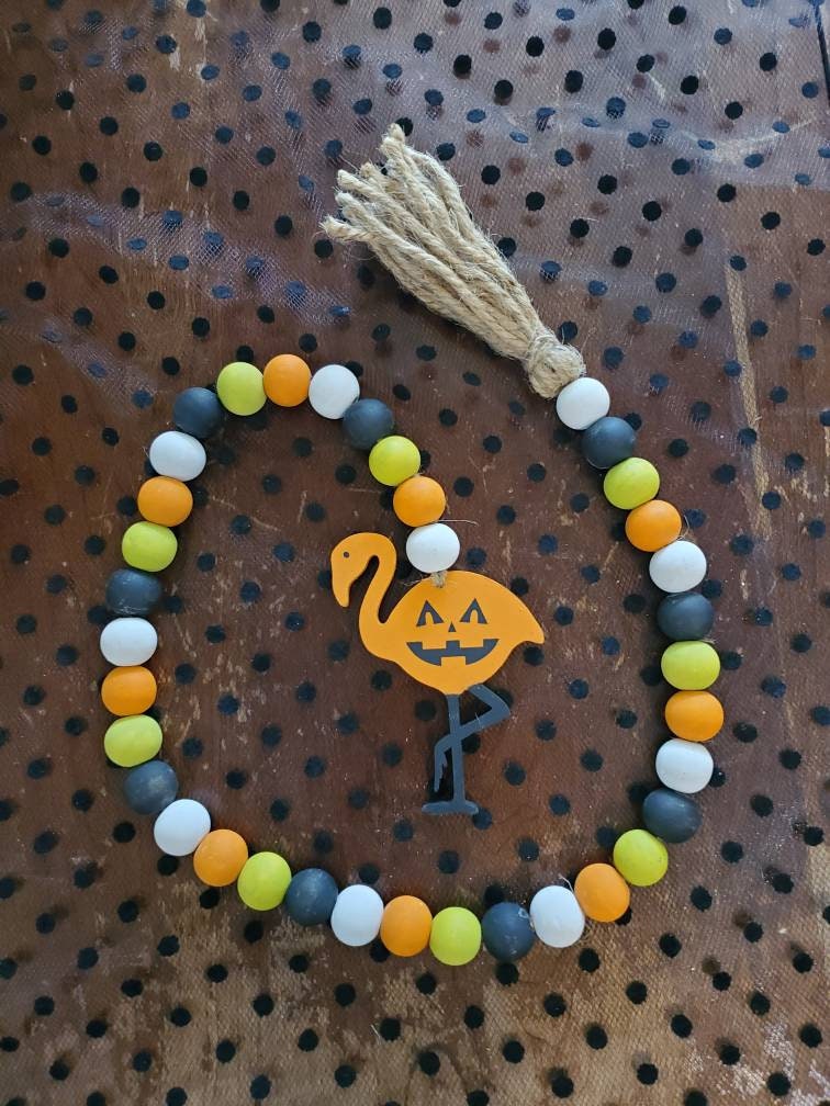 Flamingo Halloween Tiered Tray Decor – Hand-Painted Spooky Cute Signs for Coastal Halloween Styling