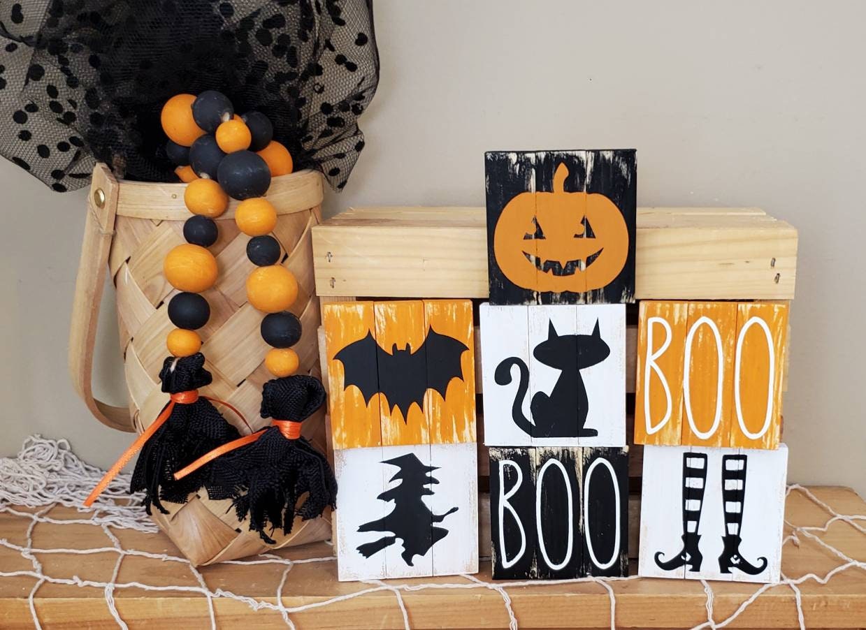 Halloween Tiered Tray Decor – Hand-Painted 3x3 Mini Signs for Spooky Cute Seasonal Styling