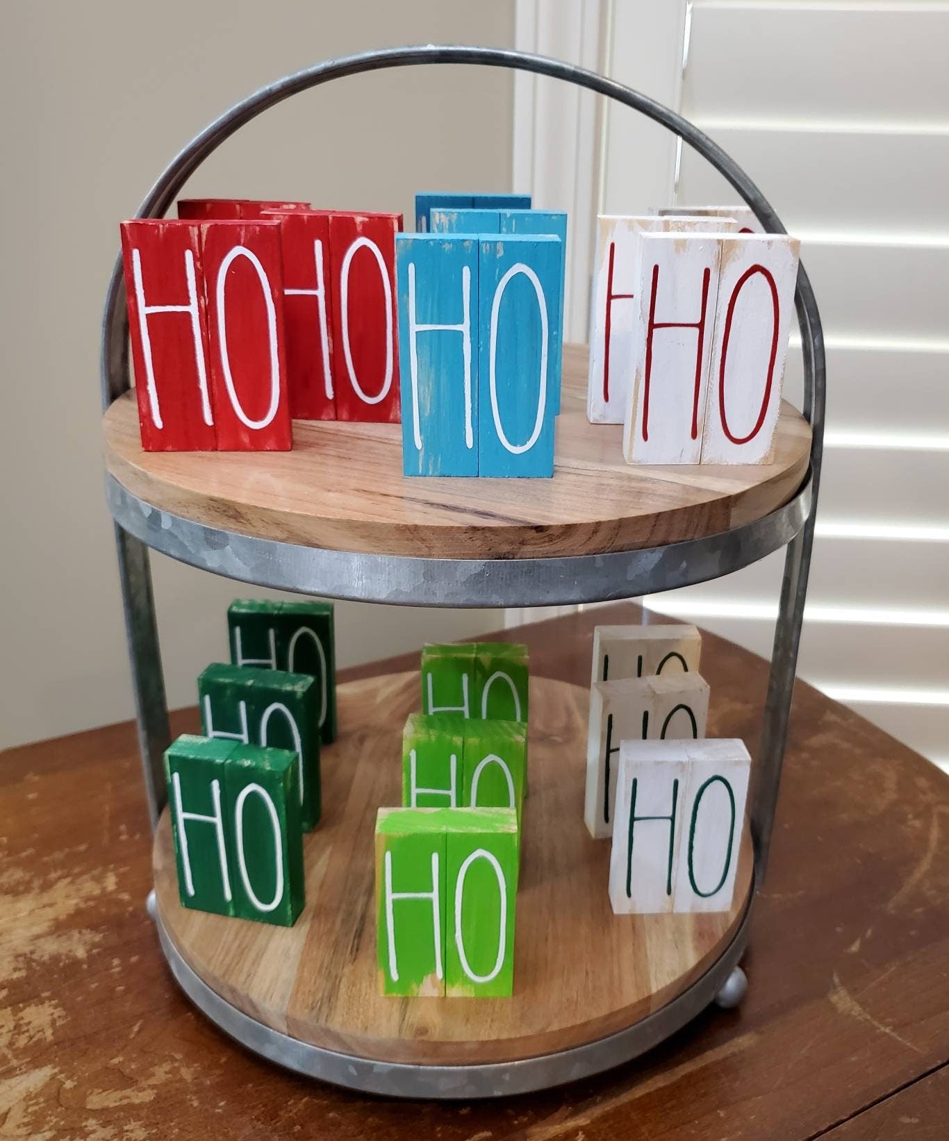 Ho Ho Ho Tiered Tray Decor – Set of 3 Hand-Painted Holiday Shelf Sitter Blocks in Custom Colors