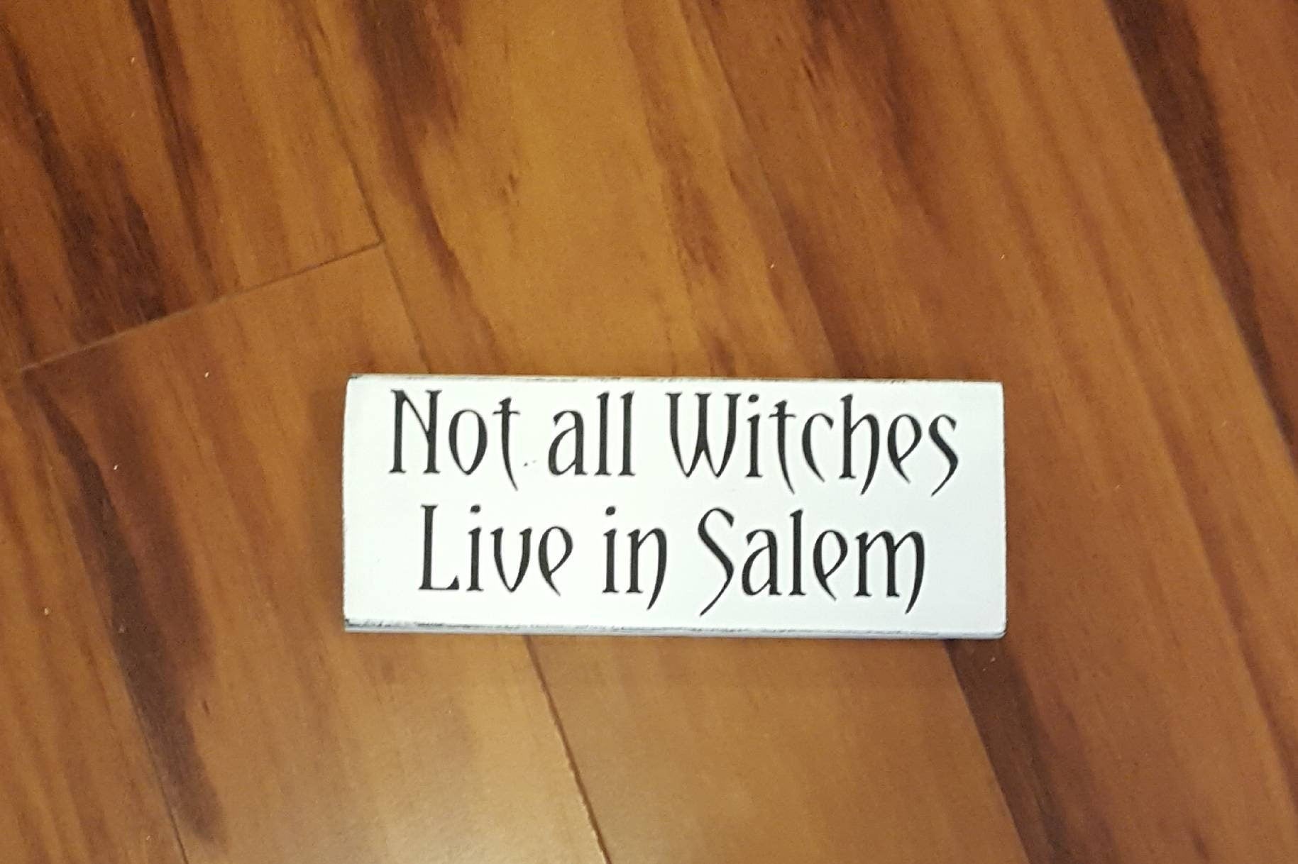 Not All Witches Live in Salem – Hand-Painted Halloween Wood Sign for Spooky Season Decor
